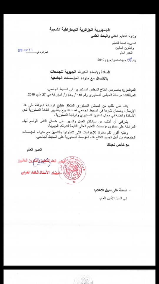 وبناءًا على قرار المجلس الدستوري رقم 20/ ق. م. د/19 المؤرخ يوم 01 يونيو